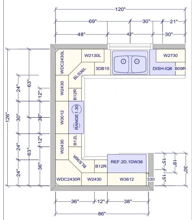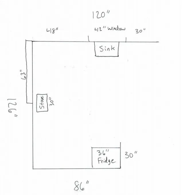 Center measurements of the sink, stove, refrigerator and any other appliance in the layout are needed.